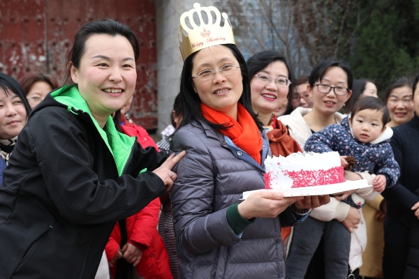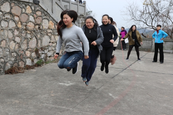 登山活动开始后,全体女员工三五一群向着东宝山顶进发,途中,女员工们个个精神抖擞,跟随春风,有说有笑,沉浸在快乐的氛围之中,整个登山活动历时一个多小时,行程约5公里。来到东宝山顶广昌门下,广大女工领取了精心准备的纪念品,并组织开展了集体跳绳、转呼啦圈等活动,期间她们还为在三八这天过生日并即将退休的女员工过了一次十分有意义的庆生会。下午,全体女员工还进行了集体观影。