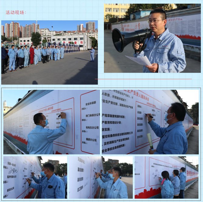 目前,荆门石化、上海高桥石化装置检修正在攻坚,公司希望通过新《安全生产法》宣传、签字承诺活动,向全体员工普及新《安全生产法》的知识,让所有员工能够知法、懂法,按照法律规定和企业的安全管理制度规范工作中的安全行为,做好自己的工作,履职尽责,爱护自己,也保护好企业。